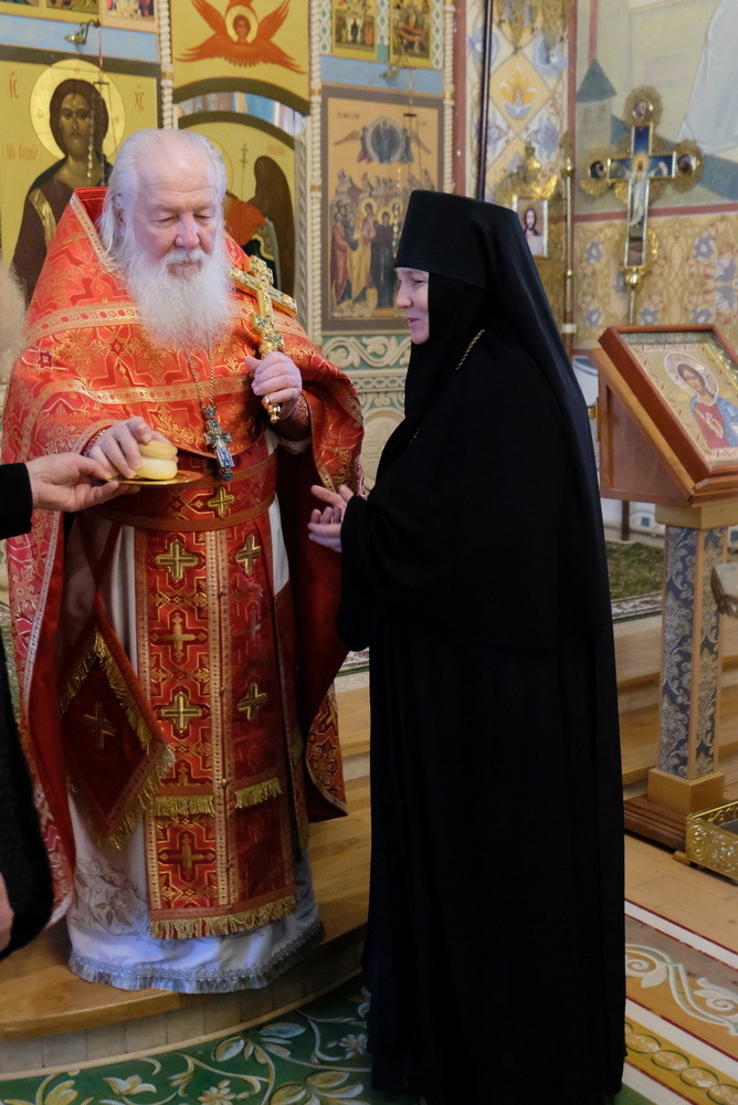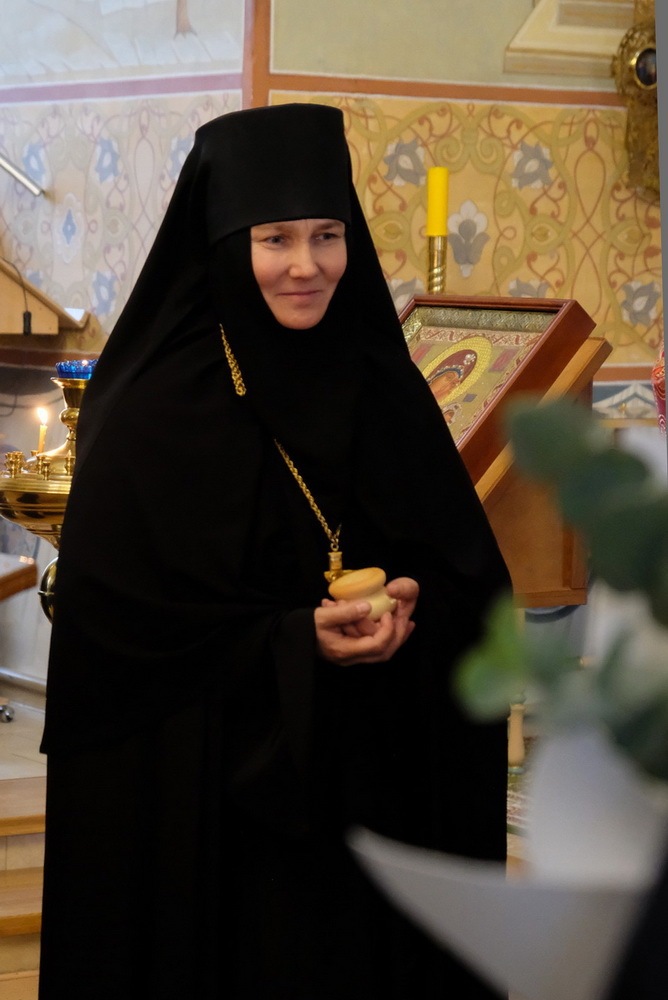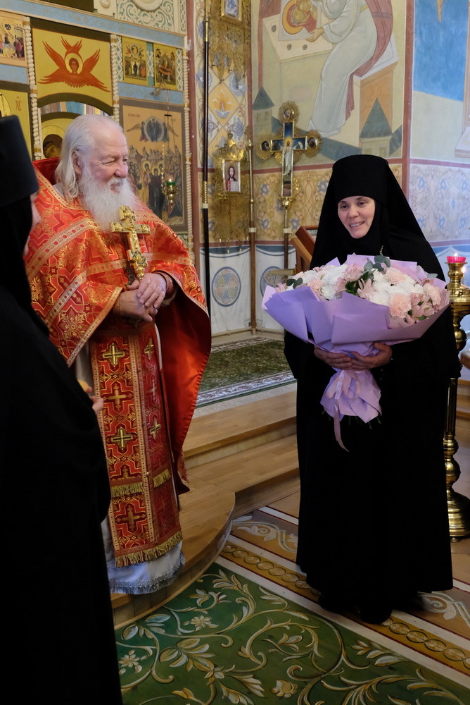 По окончании богослужения игумения Антония (Минина), настоятельница Свято-Троицкого Александро-Невского ставропигиального женского монастыря, и игумения Димитрия (Лукьянова), настоятельница Свято-Успенского Вышенского женского монастыря, поздравили игумению Неониллу (Фролову) с днем ее тезоименитства. К поздравлениям присоединились духовенство, сестры и прихожане Никольской Шостьенской обители.