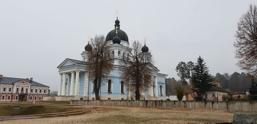 Успенский Вышенский женский монастырь находится в Рязанской области на правом берегу реки Выши, неподалеку от впадения ее в Цну. Основание обители на настоящем месте историки относят к 1625 году. Казанский собор начали строить в 1831 году и окончили в 1844 году. Храм был устроен по плану, который был снят с Саровского Успенского собора. Пятикупольный собор имеет крестообразный вид, одинаковый в длину и ширину; со всех четырёх сторон окружен колоннами с красивыми фронтонами.
